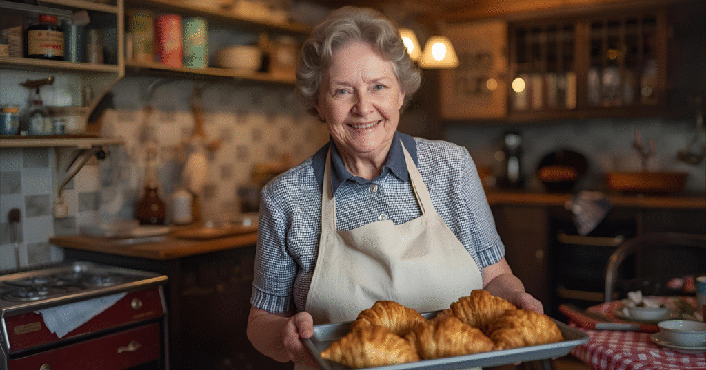 A grandmother baking croissants, passing down the pastry’s history through generations.