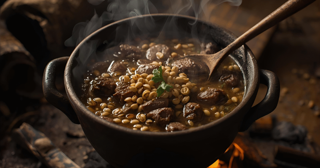The stew was slow-cooked in large clay pots, allowing meat and herbs to blend together. Archaeologists believe it was often served with fresh bread and paired with beer—making it both nutritious and ceremonial.